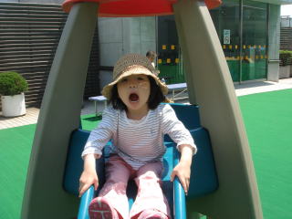 郵便局と銀行へ行って、ちょっと遊んで帰宅の予定でしたが、郵便局と銀行後、電車に乗って遊びに行ってしまいました。依亜の好きなレストランでお昼を食べ、お気に入りの屋上で遊び、本屋さんへ行き、アイスクリームを食べて帰宅しました。