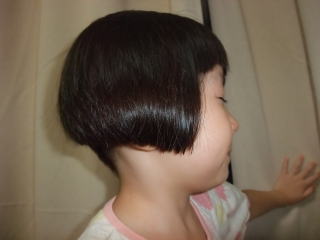 | 今日は床屋さんへ 前回は「ちびまる子ちゃん」カットにしたので 今回は「ワカメちゃんみたいにしてください!」って言ったの そしたら、お店の人がビックリして「本当にいいの?」だって・・ 私はいつだって真面目少女なのよ。  ちょっと控えめなカリアゲだけど、涼しそうでしょ!? | |