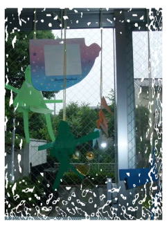 |  | 明日は七夕です。 依亜の特製短冊に3人でお願いごとを書いて、織姫さまにに見えるように飾ったよ。 天気悪いけど見つけてくれるかな? |