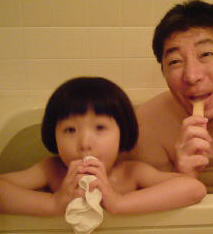 | オセロは頭を使うんだね。 お風呂に入りながら 甘くて冷たいアイスを食べて 頭の中もリフレッシュ  |  さぁ、おとさんは 依亜サラダを食べて 明日からもお仕事頑張ってね。 |