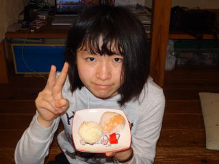 お姉ちゃんに パンを貰っていますが、そんなチッポケなパンカスじゃなくて、もっと沢山ちょうだいな