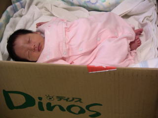 |  |  今日は3時間おきにおっぱいをあげて、我が家での初めてのお風呂も体験しました。依亜用の小さな湯船はママ実家に置いてあるので、衣装ケースを利用して入れましたよ。依亜におっぱいを飲ませて、眠ってしまったところで、チャイルドシートに乗せて21:30ママ実家へ向け出発。昨日は初めてのチャイルドシートに大泣きの依亜でしたが、今夜はよく眠ったまま、無事ママ実家に到着しました。