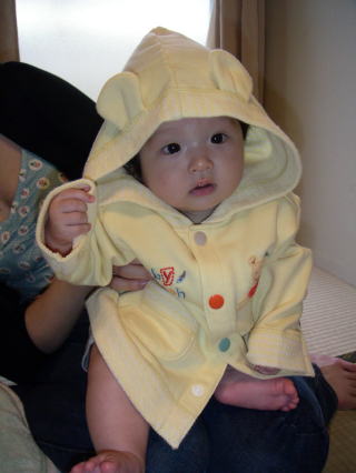 |  |  今日は朝早くに恭子お姉ちゃんがやってきて、4人で”パパのため”の買い物へでかけました。いつものショッピングモールで、スタイリスト・恭子お姉ちゃんがパパのお洋服をあれこれ選び、「warm biz」先取りのお買い物となりました。その間、依亜はママの抱っこ紐の中で眠っていました。パパの買い物が終わると、依亜のお買い物♪かわいいプーさんのカーディガンを買いました。