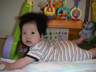 |  |  今日もおかゆをよく食べてくれました。夕方、恭子お姉ちゃんのお友達・しーちゃんママのところへちょっと立ち寄り、依亜の2ヵ月後に誕生したカホちゃんとご対面。もう少し大きくなったら、一緒に遊ぼうね!