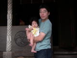 |  |  帰宅の日。行きと同様、早朝の出発です。パパジジ・パパババがたくさんお土産を持たせてくれ、依亜と写真を撮りパパ実家を後にしました。