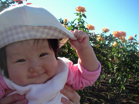 |  |  天気の良い一日。午後から3人でお散歩を兼ね、フラワーパークへ行きました。暖かい日差しをいっぱい浴び、きれいなお花をたくさん見ることができました。依亜もお花の香りをかいだり、口にして(噛んで)みたり・・・楽しんでくれたことでしょう。