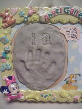 帰宅後、お友達の咲さんと百さんから結婚のお祝いにいただいた手形のとれるセットで、依亜の手形をとりました。