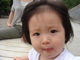 |  |  午前中の公園はママと子供だけの姿だけではなく、保育園や幼稚園に通うお兄ちゃん・お姉ちゃんたちが先生たちと遊びに来たり、近くのシルバーセンターにいるおじいちゃま・おばあちゃまがヘルパーさんたちとお散歩に来たりします。今日は前にも2〜3回お会いしていて、少しおしゃべりをしたことのある、おばあちゃま3人とヘルパーさん2人と、ベンチで一緒に座っておしゃべりをしました。依亜と80〜90歳の年の差があるおばあちゃまたち、こんな暑い日でも元気・元気。そして、依亜をとても可愛がってくださるのですが、依亜はどうしても抱っこを拒みます。それでも、おばあちゃまたちは「会えて嬉しいわ!明日も会いたい!!今日はいい1日になるわ♪どうもありがとう!!!」とお礼まで言ってくださります。「明日も来ますよ!また明日お会いしましょうね!!」とバイバイしました。