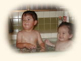 夜、ママが依亜をお風呂に入れていると、コウお兄ちゃんが“チラッ”と覗きに来ました。「コウ君も一緒に入る?」と聞くと、「うん!!」・・・ママは生まれて初めて、子供二人をお風呂に入れました。