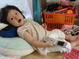 |  昨夜遅く、依亜が夢の中にいる頃、恭子お姉ちゃんがお家にやって来ました。ということで、今日はズットお姉ちゃんと一緒に遊べるのです。いつもの公園にもお姉ちゃんが連れて行ってくれ、一緒に水遊びをしてくれました。公園から帰宅して、依亜はいつものようにバタンキュー。ママはお姉ちゃんに「絶対に疲れちゃうから、一緒に寝ておきなさい!」と言ったにもかかわらず、「眠くないから・・・」と体を休めなかったお姉ちゃん。夕方になると、眠気が襲ってきて、お姉ちゃんはダウン。「だから言ったでしょ!!」
