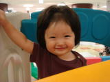 |  |  依亜とママは気分転換、1泊の予定でママ実家へ。いつもはママババが車でお迎えにきてくれますが、今日は電車で行くことにしました。依亜は電車で”大はしゃぎ”、普段はあまり食べてくれないパンやおにぎりもモグモグと食べました。場所が変わればおいしく感じるのかもしれませんね。終始ごきげんのまま、電車はママ実家近くの駅に到着し、ママババのお出迎えをうけました。ママ実家に来ても、先ずはお水遊び。そして、恭子お姉ちゃんが仕事を2時間早く切り上げ帰宅。一緒にお風呂に入り、いつもより少し夜ふかししてから寝つきました。