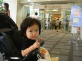 |  午前中は保険の手続きのため外出。依亜も一緒だったのですが、とてもおとなしく待っていてくれました。その後はお買い物♪バーゲン中のデパートで、依亜へ夏物のパンツを2着購入。お昼は依亜がちょうど眠ってくれたので、ママ一人ゆっくりレストランでいただきました。依亜が目覚め、本屋さんで絵本を買い帰宅しました。暑さのせいもありますが、依亜は相変わらずあまり食べません。その代わり(?)牛乳をだいぶ飲むようになりました。毎日コップで2杯位でしょうか。しかし、おっぱいはやめられず・・・・・・