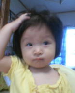 |  今日も暑い。しかし、依亜は鼻水が出ていました。エアコンのせいでしょうか?日中は窓を開け、扇風機で風を送りました。依亜がお昼寝の間、恭子お姉ちゃんが依亜の髪をカット。かなり短くなりました。ママの感想・・・昭和初期の少女、もんぺが似合いそう。