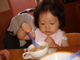 |  |  今夏はママ曾ジジの初盆(新盆)、お寺で拝んでもらうことがあり、依亜とママも参加しました。朝から雨が降ったりやんだりの蒸し暑い日でしたが、お寺で拝んでもらっている間、依亜はお利口にしていてくれました。終了して、皆でお昼となり、中華料理をいただきました。依亜はどのお料理も少しずつ口に運び、よく食べました。