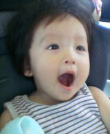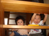 |  |  朝、うんちが出てから機嫌が悪く、気づくとまたうんち・・・朝だけで3回のうんちは下痢、お腹も痛かったことでしょう。昨日、牛乳を飲み過ぎたのが原因と思われます。お腹が落ち着くと、依亜はパタッと眠ってしまいましたが、コウお兄ちゃんが依亜に会いに来てくれ、目覚めました。