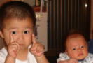 夜はコウお兄ちゃんの弟・ユウ君が来ました。ユウ君はまもなく生後1ヶ月になります。1年前、依亜もこんなに小さかったはずなのに・・・つい最近のことなのに、ママはすっかり忘れてしまい、首のすわらないユウ君を抱っこするのがとても怖かったです。