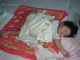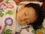 |  |  依亜、風邪をひきました。毎晩、腹巻きをして寝ているのですが、気づくと何もかけていないで寝ています。ママは隣りに寝ているけれど、ずっと見ていられるわけではないので・・・幸い、熱はなく、食欲も普通にあるので、心配はしませんでしたが、鼻水とくしゃみを頻繁にしていて、鼻水がひどくなると、手で顔をくしゃくしゃにしてイライラしている様子でした。