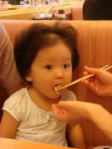 9月になり、少し暑さが和らいできたせいか、依亜はだんだん食べるようになってきました。しかし、まだまだ遊びが多く、おとなしくイスに座って食べることはできません。そして、辛いもの、すっぱいもの、塩辛いものを平気で食べてしまいます。これは好ましいことではないので、ママがもう少し厳しくしていかなくては。困ったことは歯磨きの仕上げ磨きをやらせてくれないこと。
