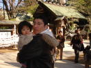 |  近所の神社へ初詣へ行きました。そして、3人でおみくじをひいたのですが、依亜とパパは“末吉”、ママは“大吉”! 今年も健康で仲良く楽しく過ごせますように祈りました。お昼を天丼屋さんで済ませると、依亜は眠ってしまったので、パパとママはお買い物。パパがママに帽子を買ってくれ、すぐに被ってしまいました。
