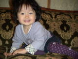 |  |  依亜の言葉: 昨日の「いいよ〜」が可愛らしく、今日もまた言ってもらおうと、「いい?」と何度も聞いていたら、依亜はそのうちニヤニヤ笑いだし、「ウン」とうなずくだけ。「何で?どうして、いいよ〜って言わないの?」と言ってもニヤニヤ・・・こちらのこと、全てお見通しなのね。そして、今日は「真っ赤っか」と言いました。