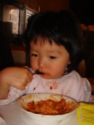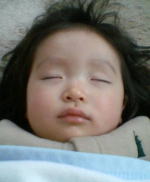 |  |  ママジジを除く5人で、デパートへでかけました。買い物をした後、お昼はママ実家で昔から行っているレストラン(オーナーがママババの友達)へ。依亜はババからわけてもらったオムライスを一生懸命食べていたのですが、だんだん動きがスローになってきて、動きが止まり、目が閉じて・・・眠ってしまいました。レストランの方がイスを並べてベッドを作ってくれ、依亜をそこに寝かせてから、ママはゆっくりお昼をいただきました。帰りの車、ママ実家に着いてもまだ眠っていた依亜でした。