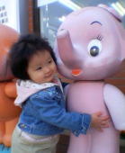 |  |  寝ている間に依亜は鼻がつまり、何度か目を覚ましました。朝起きると、鼻水を出していました。どうやら風邪をひいてしまったようです。依亜は鼻水がたれてくると「はな〜!!」と言うので、ママは拭いてあげます。風邪をひき始めてしまったので、外出はやめようと思ったのですが、ママはどうしても薬局にいる“サトちゃん”と“サトコちゃん”(サトー製薬の象のマスコット 2/8参照)に会わせてあげたかったので、お散歩にでかけました。なぜなら、昨日のお散歩でサトちゃんとサトコちゃんに会いに行ったのですが、日曜日で薬局がお休みだったため、サトちゃんもサトコちゃんも店頭に出ていなく、依亜はとても残念そうだったからです