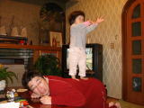 |  |  雨の一日でしたが、スーパーや、親戚宅等々に出掛けました。依亜がお昼寝から目覚め、親戚のアキちゃんとカイ君(7ヶ月)へ会いに行きました。2ヶ月前の昨年暮れにカイ君と会った時は、人見知りをして恭子お姉ちゃんにくっついて離れなかった依亜でしたが、今日はカイ君と握手したり、アキちゃんと遊んでもらったりと御機嫌でした。
