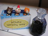 そして、パパから依亜とママへ北国のお土産をいただきました!依亜へは可愛いオルゴール、ママへはガラスのお醤油さしです。パパ、ありがとう!!