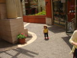“村”に到着したのはお昼近くだったため、少し散策をしてから早々にご飯にしました。屋台のパスタとピザを依亜もおいしそうに食べました。食後は広場でカンツォーネを聴き、30分程の鑑賞でしたが、“おっさん(←パパが依亜に教えました)”の歌を依亜はノリノリで手拍子をして楽しんでいました。