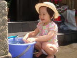 |  午前中、ママババが依亜を海へ連れていってくれたのですが、波を怖がってまもなく帰宅、お家の前でバケツに水をはって遊んでいました。夕方、ママは依亜をママババと恭子お姉ちゃんに託し、“ミーティング”へでかけました。ミーティングはいつものお店で開催され、ナオコさん、かおりちゃん、ヒラッちゃん、バティストさんが集合。途中、ママは依亜の様子をババに電話で聞くと、イトコのクミちゃんが来てくれていて、依亜は大はしゃぎで遊んでもらっているとのこと。ママは安心して、ミーティングに戻りました。