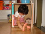 |  出勤前、パパが依亜へオムツの段ボール箱で、依亜のお家を作ってくれました。しかし、2歳になった依亜には小さかったお家。それでも依亜は「おとさん、作ってくれた!」と喜んでいました。