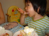 帰宅すると、石井のおじちゃんが遊びに来てくれました。今週、パパと遊んでくれるそうで、その打ち合わせ(?)のためだと思うのですが、とっても美味しいケーキまで頂いてしまいました。ありがとうございました。  依亜は「石井さん」と言うことができました。人見知りは着実に克服されてきているかな?