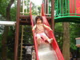 “村”を出てから、駅の近くで子供広場を見つけました。休日の子供広場は混雑していましたが、マイペースな依亜は “ひとりで” 思いっきり遊んでいました。
