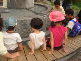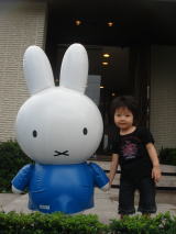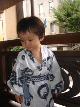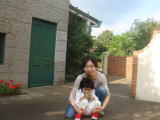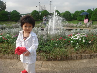 |  |  雨が強く降ったり、やんだりの一日でした。雨が小雨になった時、依亜に合羽と長靴をはかせ、旅行代理店で飛行機・電車・ホテルの予約をしてきました。