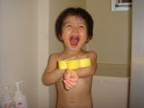 依亜はお昼寝をしなく眠そうだったので、お夕飯前にお姉ちゃんがお風呂に入れてくれました。
