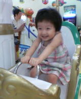 |  |  パパ、今日から夏期休暇です!今日はのんびり商店街を散歩。途中の薬局前で依亜が佐藤製薬のキャラクター・サトコちゃんの乗り物に乗車したり、買い物をしたりして、夕方に帰宅。