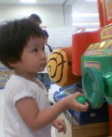 お昼は依亜の好きな回転寿司へ行き、その後、ショッピングセンターでママババが依亜へ”アンパンマンのガチャガチャマシン”を買ってくれました。依亜はあまり物を欲しがらないのですが、この”ガチャガチャ”だけは欲しかったようで、前から「ババにお願いしてみる」と言っていたのでした。