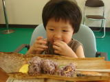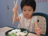 |  たぶん4時前・・・、「あっち行く。お水飲む」と依亜が起き上がったので、ママは「待ってて!」と急いでお水を持ってきて飲ませたら、「おかさんも飲んで・・・お水おいしいね。お腹にお水」と言って、また眠ってしまいました。そして、朝起きたら、“かき氷”を作ったのでした。午前中は近所の車屋さんでパパが車を見ている間、依亜はお気に入りのキッズスペースで遊びました。帰宅して、干しておいたお布団をしまい、住宅展示場へ向かうことにしました。途中、回転寿司でお昼にすることにし、席につくや否や、依亜は流れてきたアップルジュースを取り、次に“アジ”のお寿司を取って、パパに「はい、どうぞ」と・・・食べ終わり、席を立つ時、「楽しい!イッチはこれ大好き!!」と満足していました。