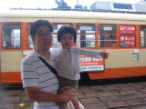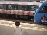 |  |  今日も雨。パパは遅い夏休みが今日で終わり明日からお仕事のため帰宅です。 いつもは車で帰宅するのですが、今回は電車で帰宅。依亜、恭子お姉ちゃん、ママババ、ママの4人でパパを駅まで送りました。