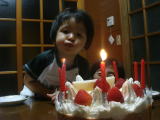 ・・・・・実は・・・・・ケーキを待ちきれないのか、お歌をうたいたいのか、実家の玄関を入りババを見るなり、早くも「ハッピーバースデートゥーユー」と。夜の本番前に何回も歌っていたのはご愛敬。