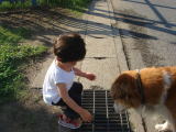 |  |  ママ実家近所の犬・ムックへハムをあげに行きました。ムックは依亜のことをちゃんと覚えていて、喜んでいました。寝る前に、お家にいるパパとパソコン電話をしました。
