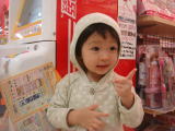 |  |  依亜の足は14.5pになりました。持っている靴で、14.5pは2足、15pが1足のため、ママババが靴を買いに連れて行ってくれました。1件目の靴屋さんで、依亜は“ウサハナ”というキャラクターの気に入った靴を見つけたのですが、15pのサイズがなかったため、別の靴屋さんで。ここでサイズが見つかり、依亜はお気に入りを買ってもらうことができました。よかったね♪ |  |  |
