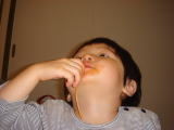 お姉ちゃんは、お夕飯にとお得意(?)の“紅白スパゲティ(紅=ミートソース、白=クリームソース)”を作っておいてくれました。 お姉ちゃんのスパゲティを“いただきま〜す”と白スパゲティを一口食べたパパが黙り込んで、お姉ちゃんの方をチラリッ、、、、、お姉ちゃんが「あっ!!私、塩・こしょう入れるの忘れた!!ごめん、味がないよね!ちょっと、回収!!」と白スパゲティが取り上げられ、味付けをしてから再び登場・・・今度はおいしくて、パパは依亜とママの食べ切れなかった分(お姉ちゃんは大量に作るのです)も食べてくれました。