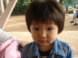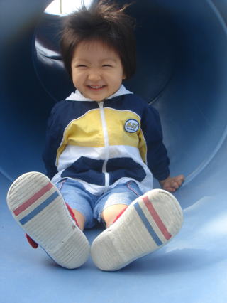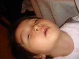 |  |  ママが6時に起きると、依亜はパパと同じ向きでくっついて寝ていて、二人とも何もかけていませんでした。二人に毛布をかけ、ママはお弁当作りと思ったら、早々と依亜も目を覚ましました。しかし、居間のカーペットの上に寝ころんで、そのままスヤスヤとまた寝てしまいました。今日は天気が良かったので、10時前に依亜を公園へ連れて行き、とても喜んでくれたのですが・・・依亜、鼻水が出てきました。今日、外に出たのがダメだった?でも、暖かかったよ・・・おそらく、パパの風邪がうつってしまったようです。