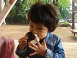 |  |  午前中、スーパーマーケットへ行くと、“駅弁大会”をやっていました。今日はちょっと贅沢(?)にと、駅弁を2つ購入。依亜は新千歳空港名物、イクラ・鮭、蟹のお寿司弁当、パパにはお夕飯にと横川駅名物、峠の釜飯です。今日は良い天気、お昼はお外で食べようと決めました。帰宅して、“ウサハナ・リュック”にお弁当を入れ、“ウサハナの靴”を履いた依亜は「レッツゴー!!」と公園へ。遊んで、お弁当を食べ、砂遊びもして・・・依亜はとても喜んでくれました。ママもとても気分が晴れやかになりました。