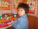 |  朝起きて、恭子お姉ちゃんが横に寝ていたので、ビックリした依亜。昨夜の雨もあがり良い天気。依亜は鼻の下がカピカピですが、もう鼻水は出ていません。お姉ちゃんはショッピングモールへ遊びに行きたかったようでしたが、依亜は「ヤダ!○○○○(←スーパーマーケットの名前)行く!」と。。。ママは洗濯しなきゃ、パパは風邪が治らず再び病院へ行かなきゃ、だったので、依亜はお姉ちゃんを連れてスーパーマーケットへ。 ママが家事を済ましてスーパーマーケットへ行くと、二人はゲームセンターにいました。