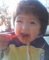 食後もシャボン玉をしましたが、シャボン玉の液がなくなると、今度は公園でブランコと滑り台。そして、バッグに忍ばせておいた蒸しパン(これはお昼のおうどんだけでは足りないだろうママが、後で食べようとしていた)を見つけ、「食べる」と依亜。「え〜、蒸しパン食べないじゃない・・・本当に食べるの?」と言うと、「うん」と。その通り、依亜は蒸しパンをパクパク食べたのでビックリ!!普段は一口も食べないのに、お外だときっと何でもおいしいのね♪
