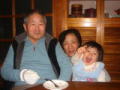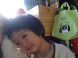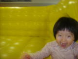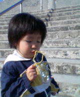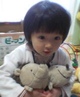 |  | 先日、いつもお世話になっている近所のおばさま・Rさんから、抽選会をやっている会場でもらえるお味噌の引換券をいただき、夕方3人ででかけ、お味噌1キロいただき、抽選のガラガラは当たりませんでしたが、キャンディをたくさんいただきました。 ママがお風呂に入っている間、依亜とパパはママ実家とパソコン電話をしていました。