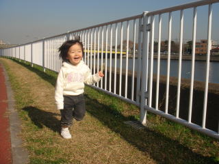 今日は天気が良く、シャボン玉をすると決めていたので、買い物から戻り、お昼が近かったのですが、依亜との約束を破るわけにはいかず、シャボン玉を持って近所の川沿いへ。楽しんでくれた依亜でした。