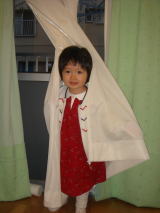 |  |  寝る前のこと。。。 ママは依亜に”学校”の話をしました(幼稚園を飛び越してしまったけど)。依亜は興味深そうに聞いてくれ、いくつか質問もしてニコニコ顔。「学校、楽しみ〜。早く行きたい」と本当に嬉しそうな良い顔で言っていました。楽しい夢が見られますように・・・ |  |  |